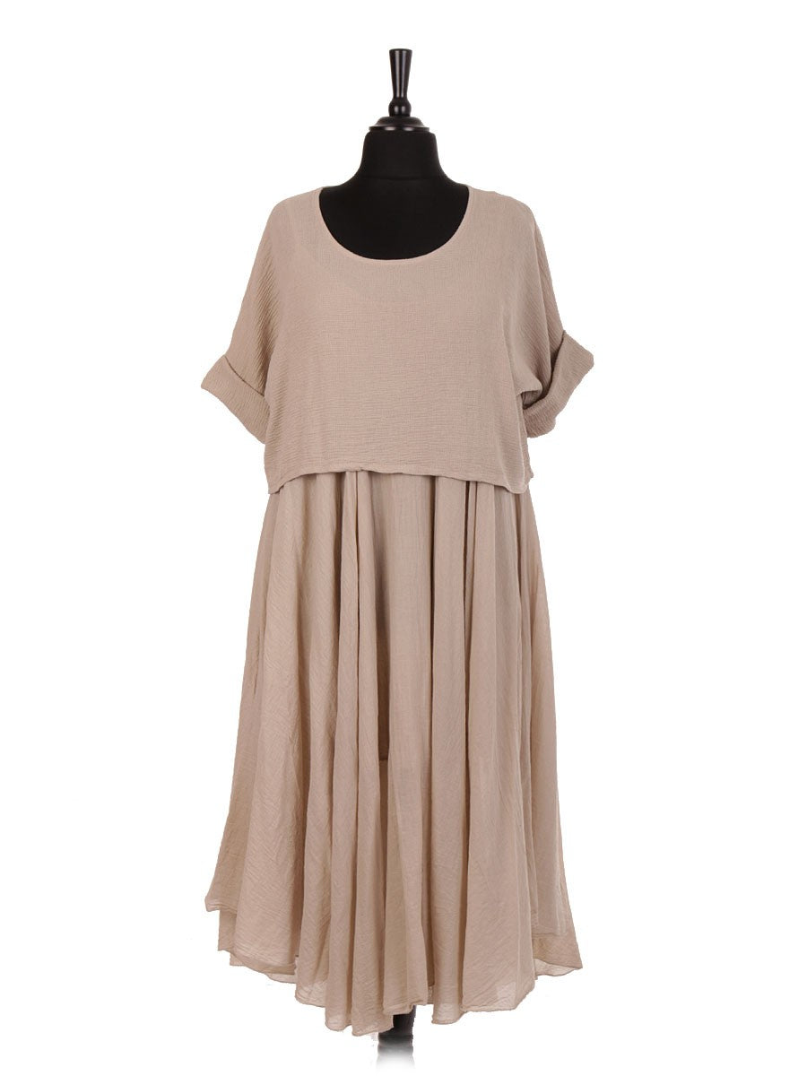 Experience elegance and comfort with this beige Italian Cotton 2 Piece Flare Maxi Dress featuring a coordinating shrug top. Crafted from premium Italian cotton, the dress offers breathable softness and a flattering flare silhouette that moves gracefully. The matching shrug adds versatility and a refined touch, perfect for layering in cooler settings or enhancing your ensemble. Ideal for sophisticated occasions, this set combines timeless style with expert tailoring for a polished, effortless look.