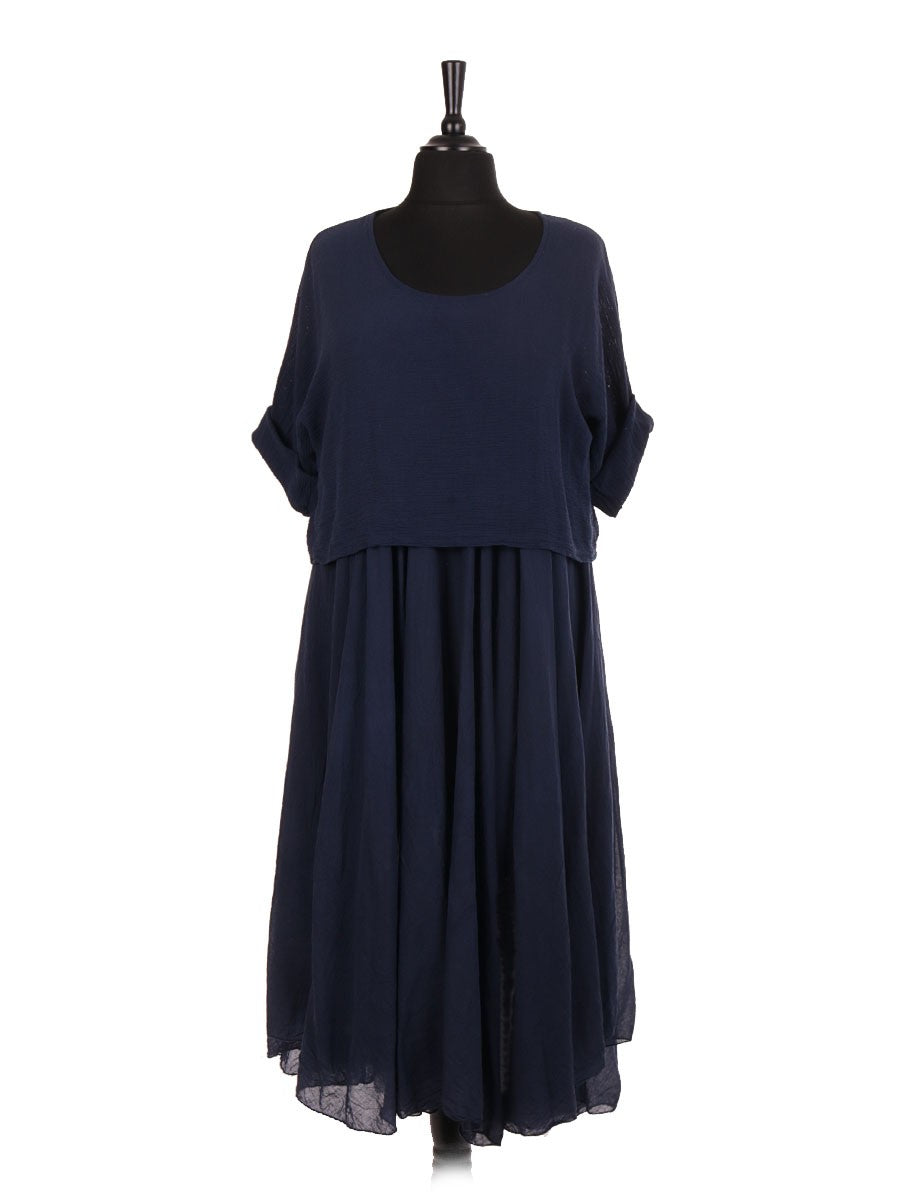 Experience elegance and comfort with this navy Italian Cotton 2 Piece Flare Maxi Dress featuring a coordinating shrug top. Crafted from premium Italian cotton, the dress offers breathable softness and a flattering flare silhouette that moves gracefully. The matching shrug adds versatility and a refined touch, perfect for layering in cooler settings or enhancing your ensemble. Ideal for sophisticated occasions, this set combines timeless style with expert tailoring for a polished, effortless look.