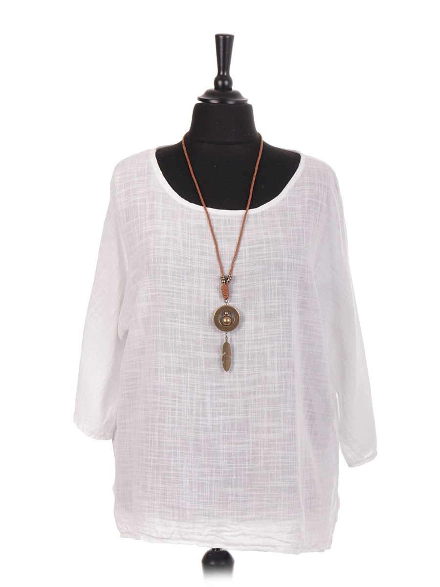 Crafted from premium Italian cotton, this white top offers exceptional breathability and comfort, ideal for all-day wear. Its refined design is complemented by an integrated necklace, adding a sophisticated touch without the need for extra accessories. Perfect for elevating both casual and semi-formal outfits with effortless elegance.