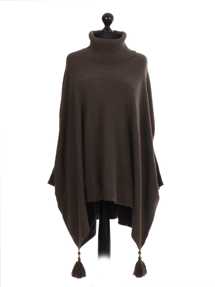 Elevate your wardrobe with the khaki Italian Cowl Neck Batwing Tassels Poncho, expertly crafted for both style and comfort. Its draped cowl neck and flowing batwing sleeves offer a flattering silhouette, while the delicate tassel detailing adds a refined touch. Perfect for layering, this poncho combines Italian design elegance with versatile wearability, making it an essential piece for sophisticated, effortless dressing.
