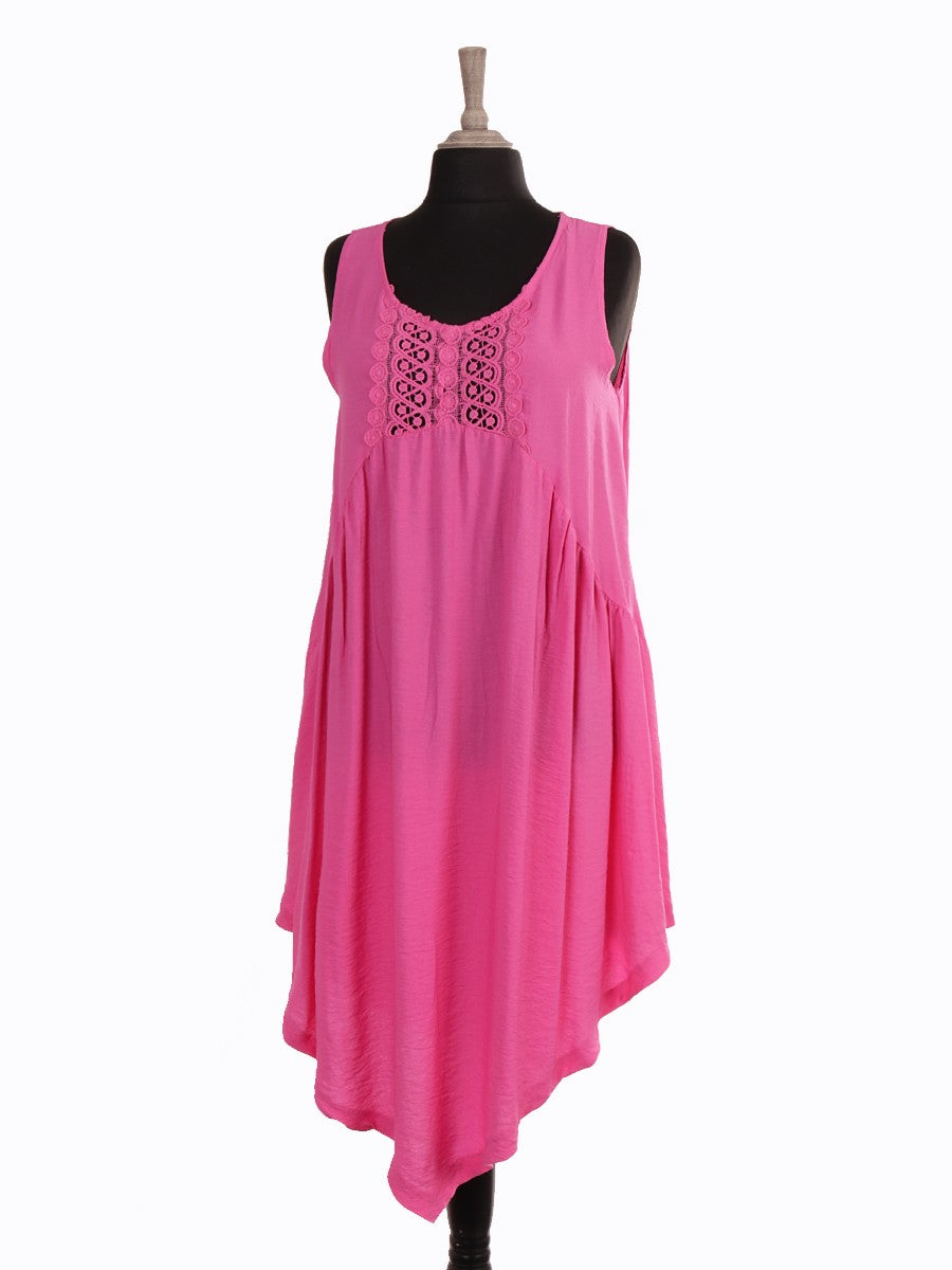This cerise Italian Crochet Detail Handkerchief Hem Dress combines elegant craftsmanship with practical design. Featuring intricate crochet accents and a flowing handkerchief hem, it offers a sophisticated silhouette that moves gracefully. Thoughtfully designed pockets add convenience without compromising style, making this dress a refined choice for both casual and dressier occasions. Crafted to highlight quality and detail, it embodies timeless Italian-inspired fashion.