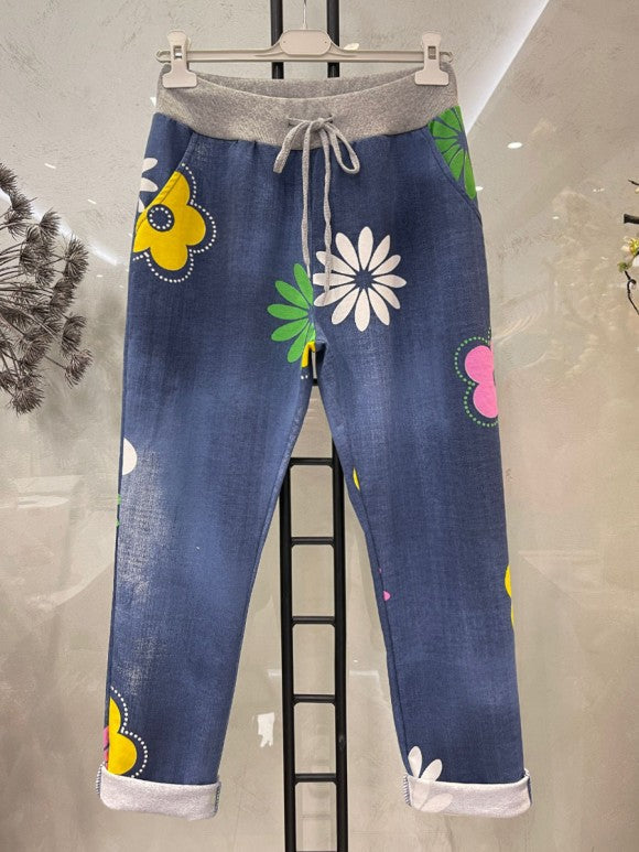 These Denim Charcoal Italian Daisy Flower Print Cotton Trousers combine classic craftsmanship with fresh floral design. Made from high-quality cotton, they offer breathable comfort and durability. The delicate daisy print adds a touch of elegance, making them suitable for both casual and refined occasions. Expertly tailored for a flattering fit, these trousers provide effortless style with a nod to timeless Italian fashion.