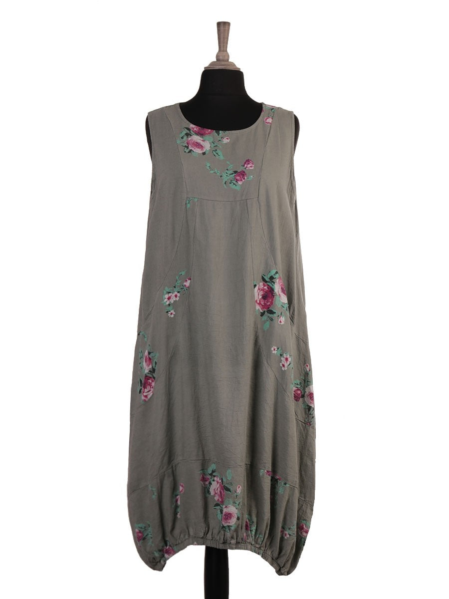 This khaki Italian linen dress features a relaxed lagenlook silhouette with a delicate floral pattern and an elasticated hem for a comfortable, flattering fit. Crafted from breathable linen, it offers natural comfort and effortless style, ideal for warm weather or layered looks. The elasticated hem adds subtle shape while maintaining ease of movement, making it a versatile addition to any wardrobe.