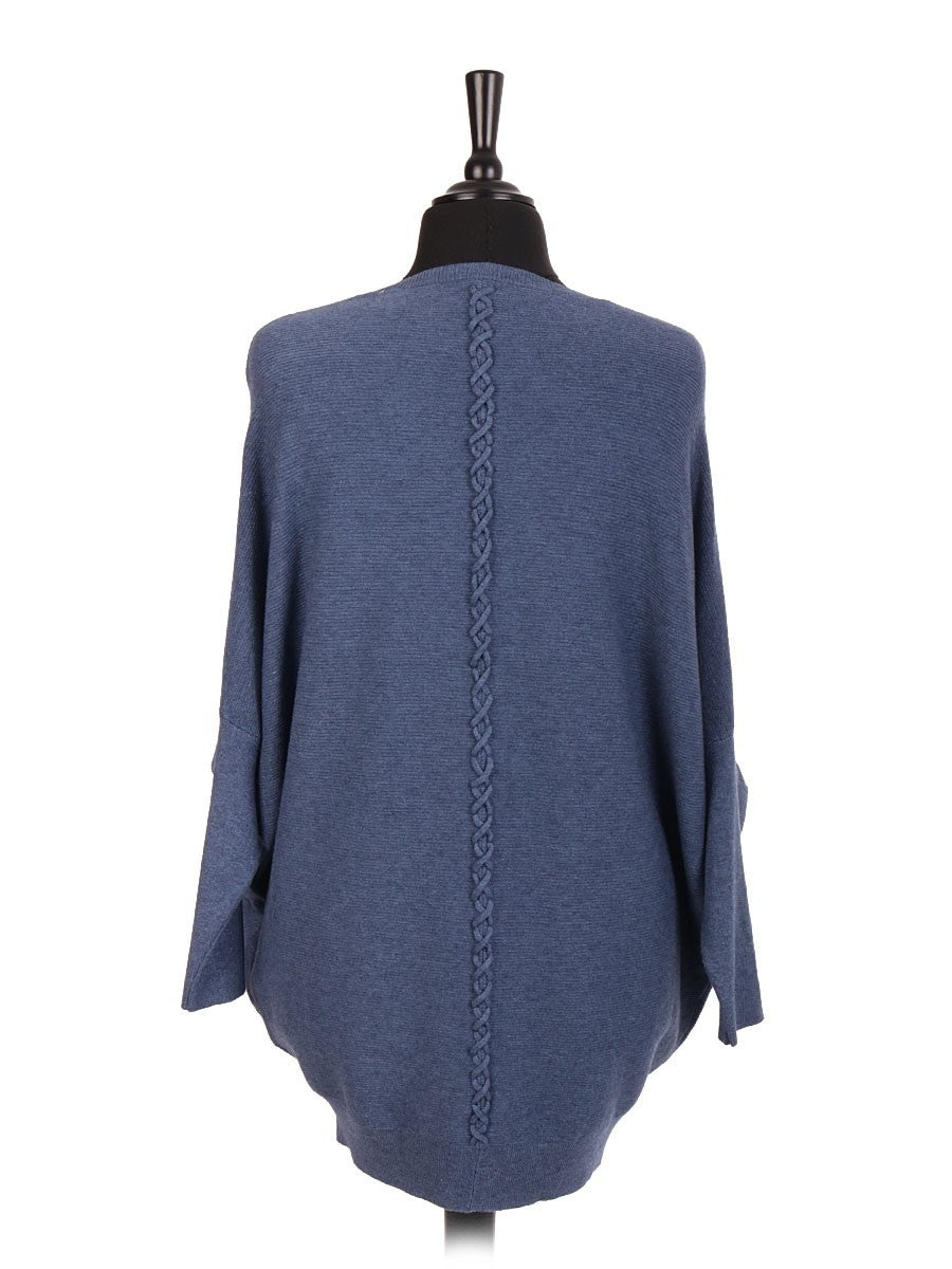 This denim Italian Lace Back Batwing Jumper combines elegant design with practical comfort. Featuring a delicate lace back detail, it adds a sophisticated touch to your wardrobe, while the batwing sleeves ensure a relaxed fit and freedom of movement. The front diagonal pocket offers convenient storage without compromising style, making this jumper a versatile choice for both casual and refined looks. Crafted with quality materials, it promises durability and lasting comfort.