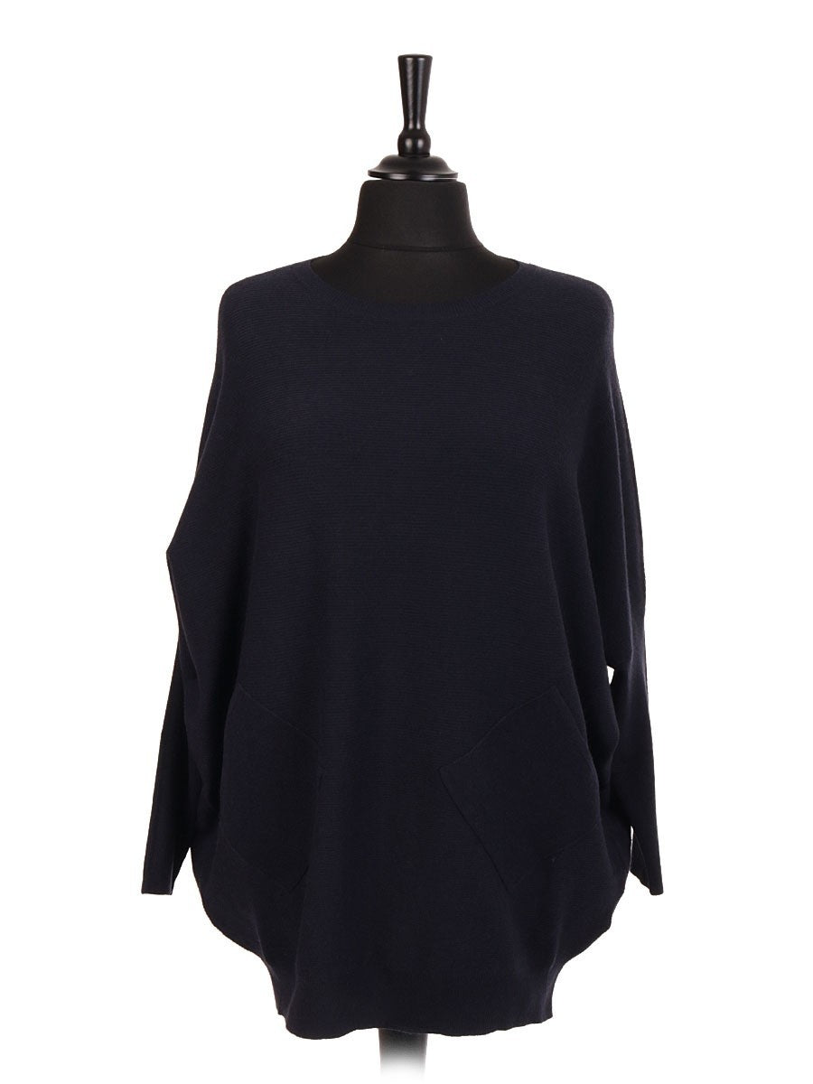 This navy Italian Lace Back Batwing Jumper combines elegant design with practical comfort. Featuring a delicate lace back detail, it adds a sophisticated touch to your wardrobe, while the batwing sleeves ensure a relaxed fit and freedom of movement. The front diagonal pocket offers convenient storage without compromising style, making this jumper a versatile choice for both casual and refined looks. Crafted with quality materials, it promises durability and lasting comfort.