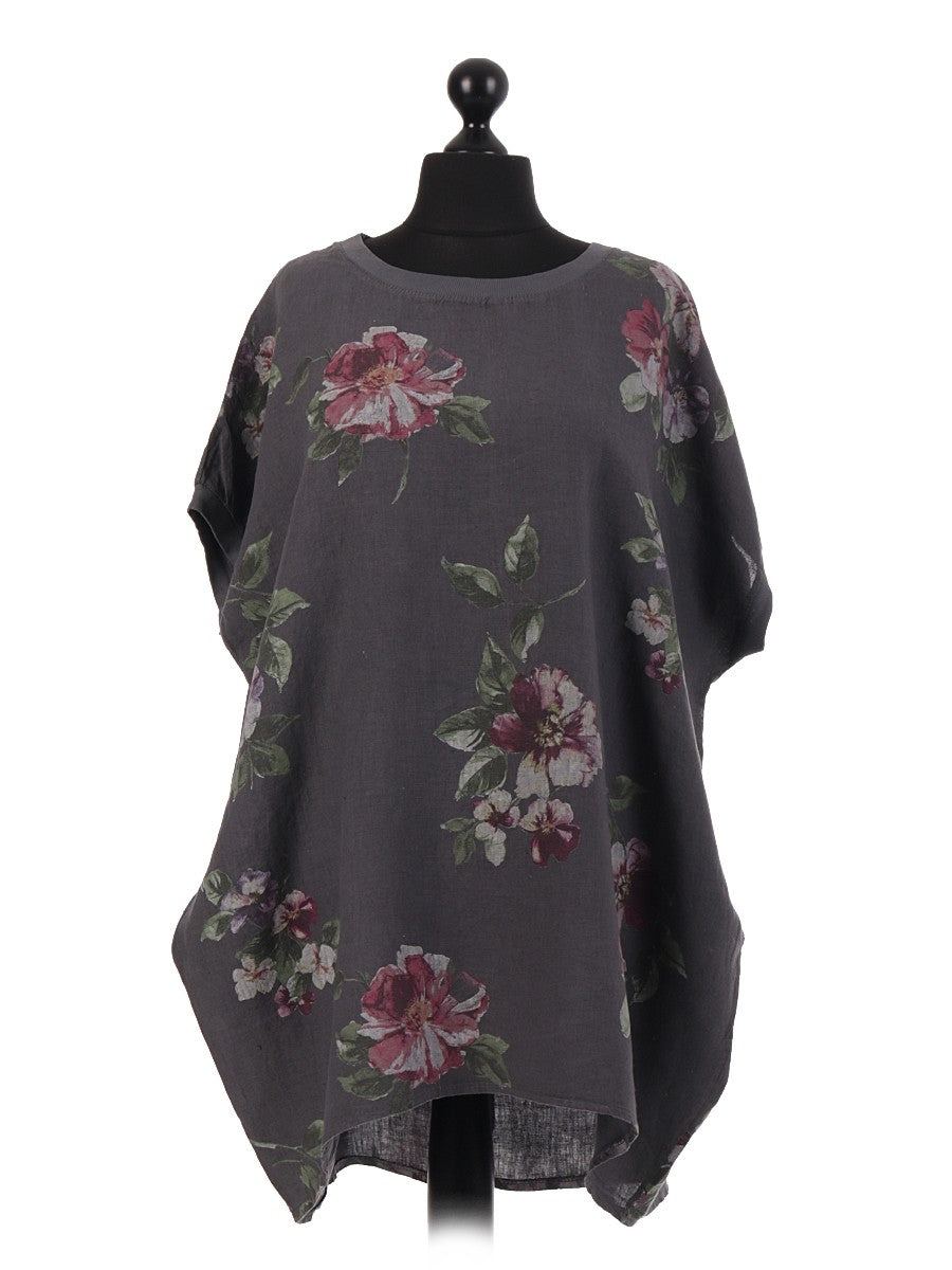 Crafted from premium Italian linen, this charcoal floral baggy top combines breathable comfort with effortless style. Its relaxed fit drapes elegantly, making it ideal for warm weather or layering. The delicate floral pattern adds a refined touch, perfect for elevating casual or smart-casual outfits with a sophisticated, expert finish.