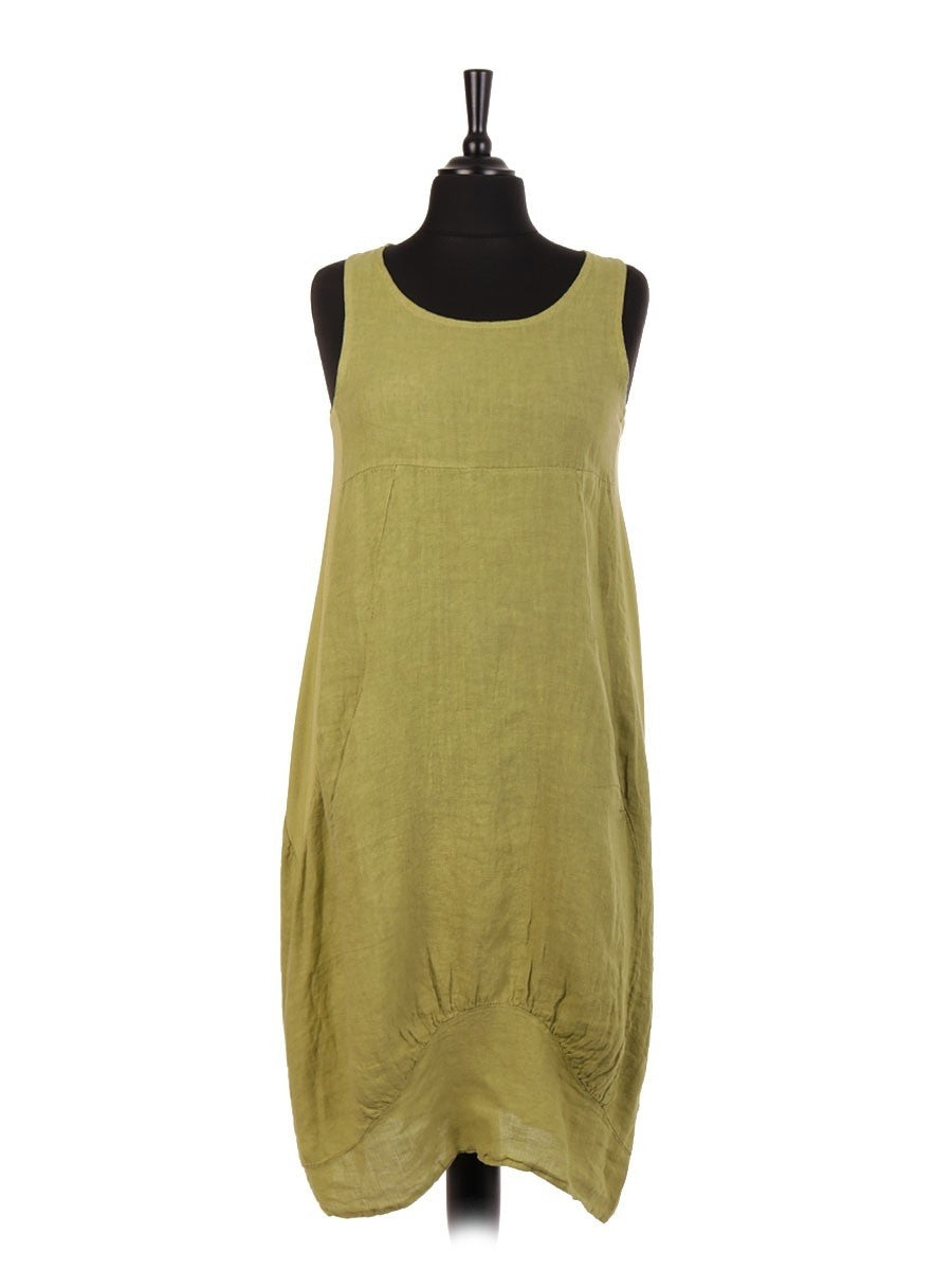 Crafted from premium Italian linen, this lime green Lagenlook dress features a distinctive side ribbed panel that enhances its relaxed silhouette. Designed for comfort and style, it offers breathable fabric ideal for warm weather while the ribbed detail adds subtle texture and visual interest. Perfect for those seeking an effortlessly elegant yet contemporary look.