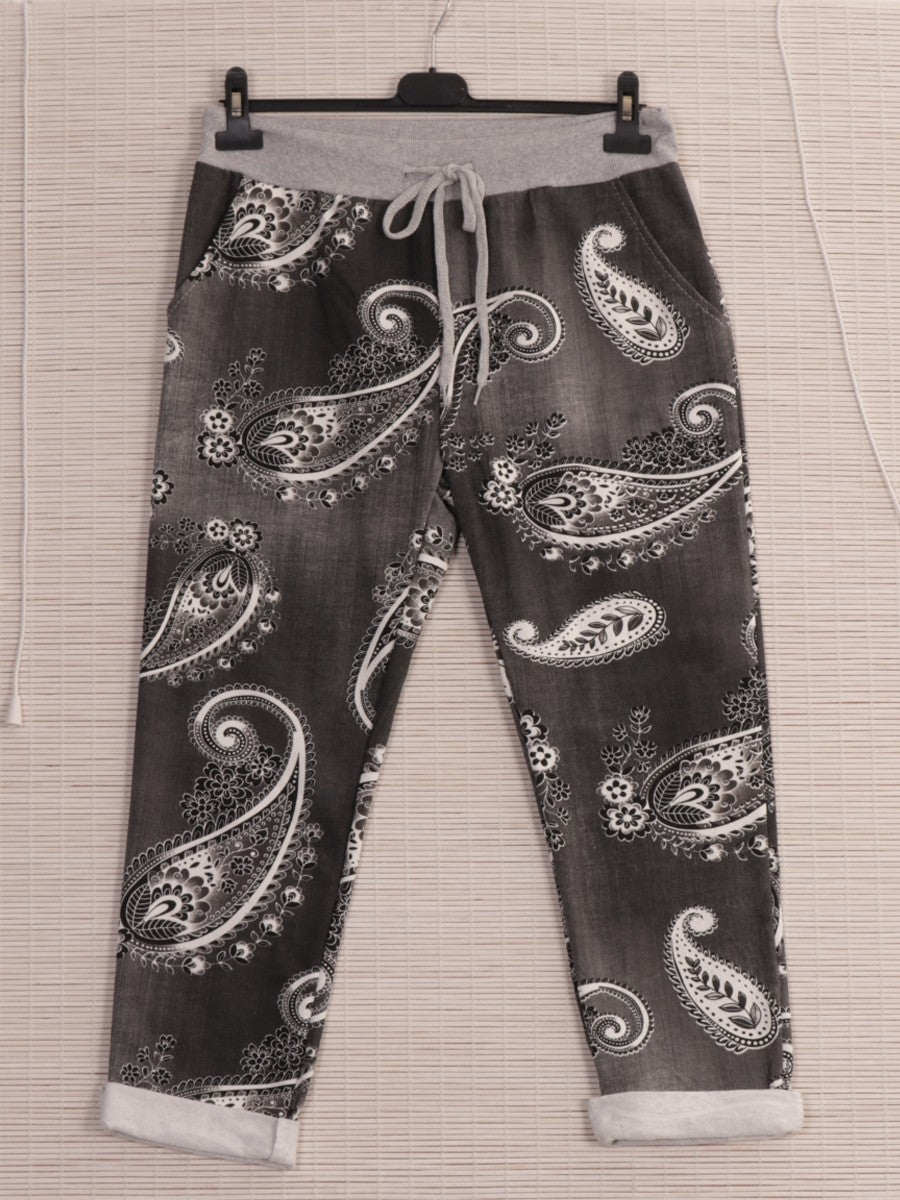 These Black Italian Paisley Print Cotton Trousers combine classic craftsmanship with contemporary style. Made from high-quality cotton, they offer breathability and comfort throughout the day. The intricate paisley pattern adds a sophisticated touch, making them suitable for both casual and semi-formal occasions. Expertly tailored for a flattering fit, these trousers provide durability and timeless elegance in one versatile piece.