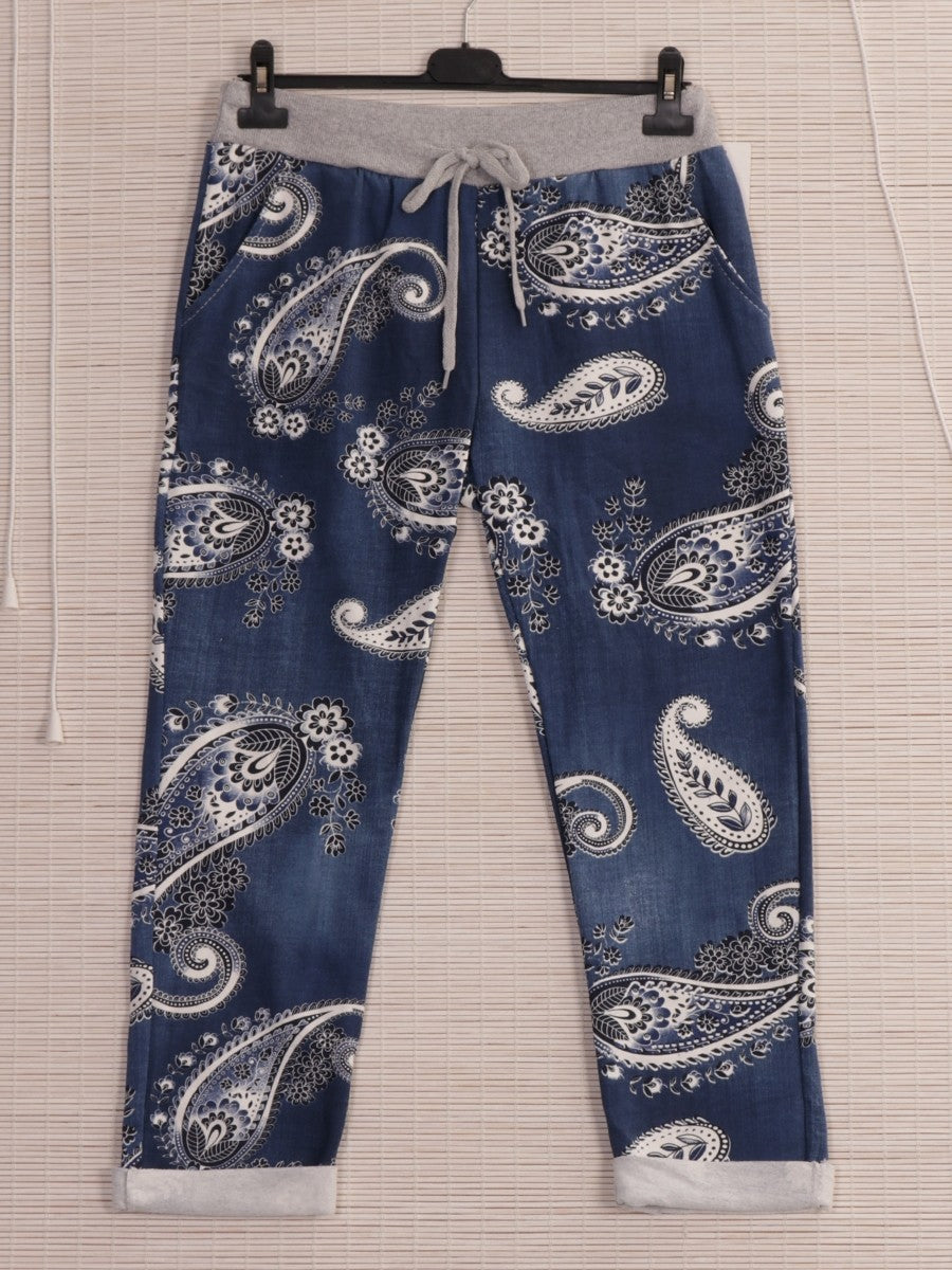These Denim Italian Paisley Print Cotton Trousers combine classic craftsmanship with contemporary style. Made from high-quality cotton, they offer breathability and comfort throughout the day. The intricate paisley pattern adds a sophisticated touch, making them suitable for both casual and semi-formal occasions. Expertly tailored for a flattering fit, these trousers provide durability and timeless elegance in one versatile piece.