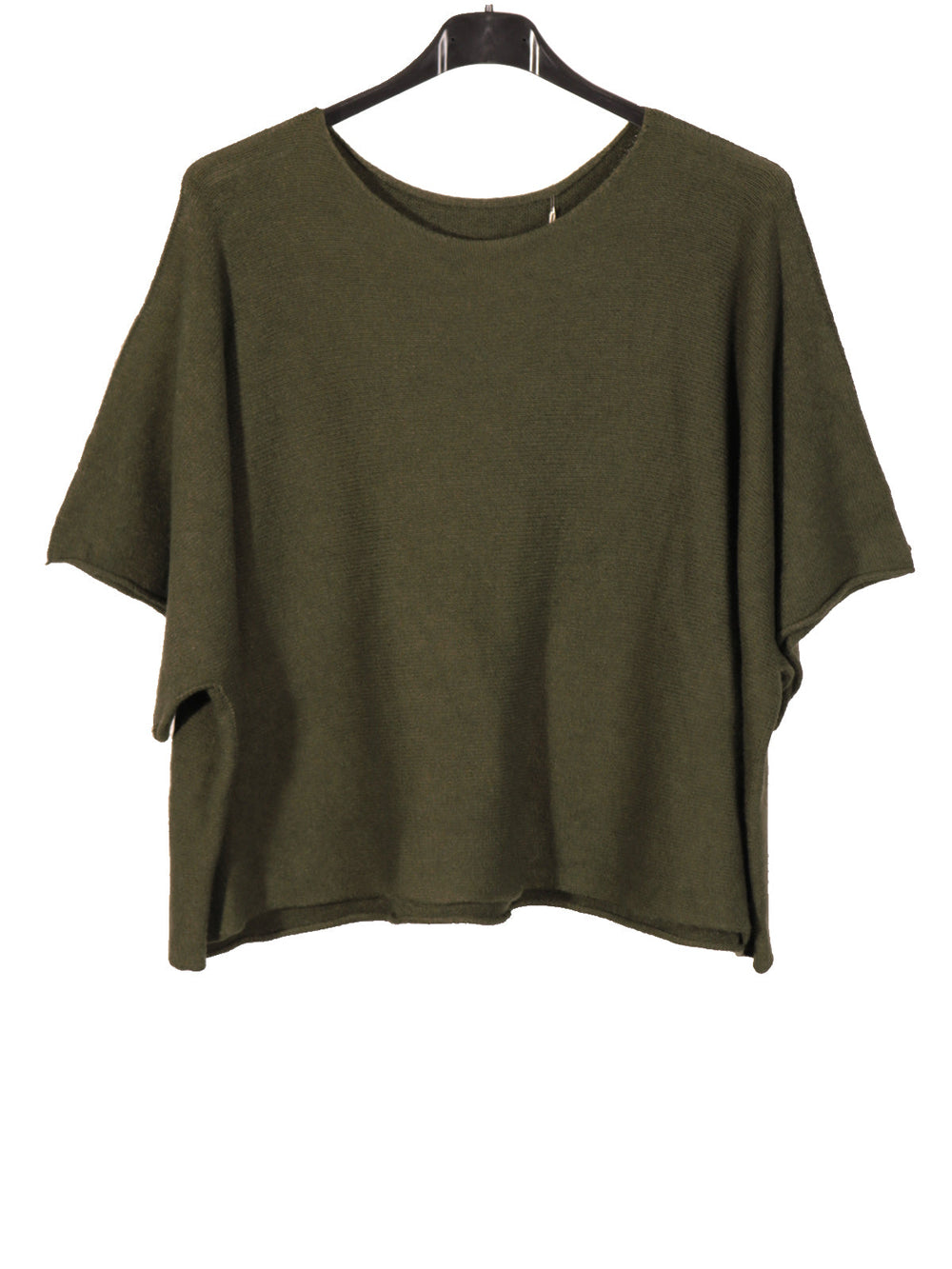 Italian Plain Knitted Batwing Crop Jumper crafted from a refined blend of viscose, polyamide, and polyester, this Italian Plain Knitted Batwing Jumper in army green offers both comfort and durability. Designed as one size to fit UK sizes 8 to 16, it features a relaxed batwing silhouette with a 22-inch length and 26-inch width from pit to pit, ensuring a flattering, adaptable fit. Ideal for layering, this jumper combines a minimalist style making it a versatile addition to your wardrobe.