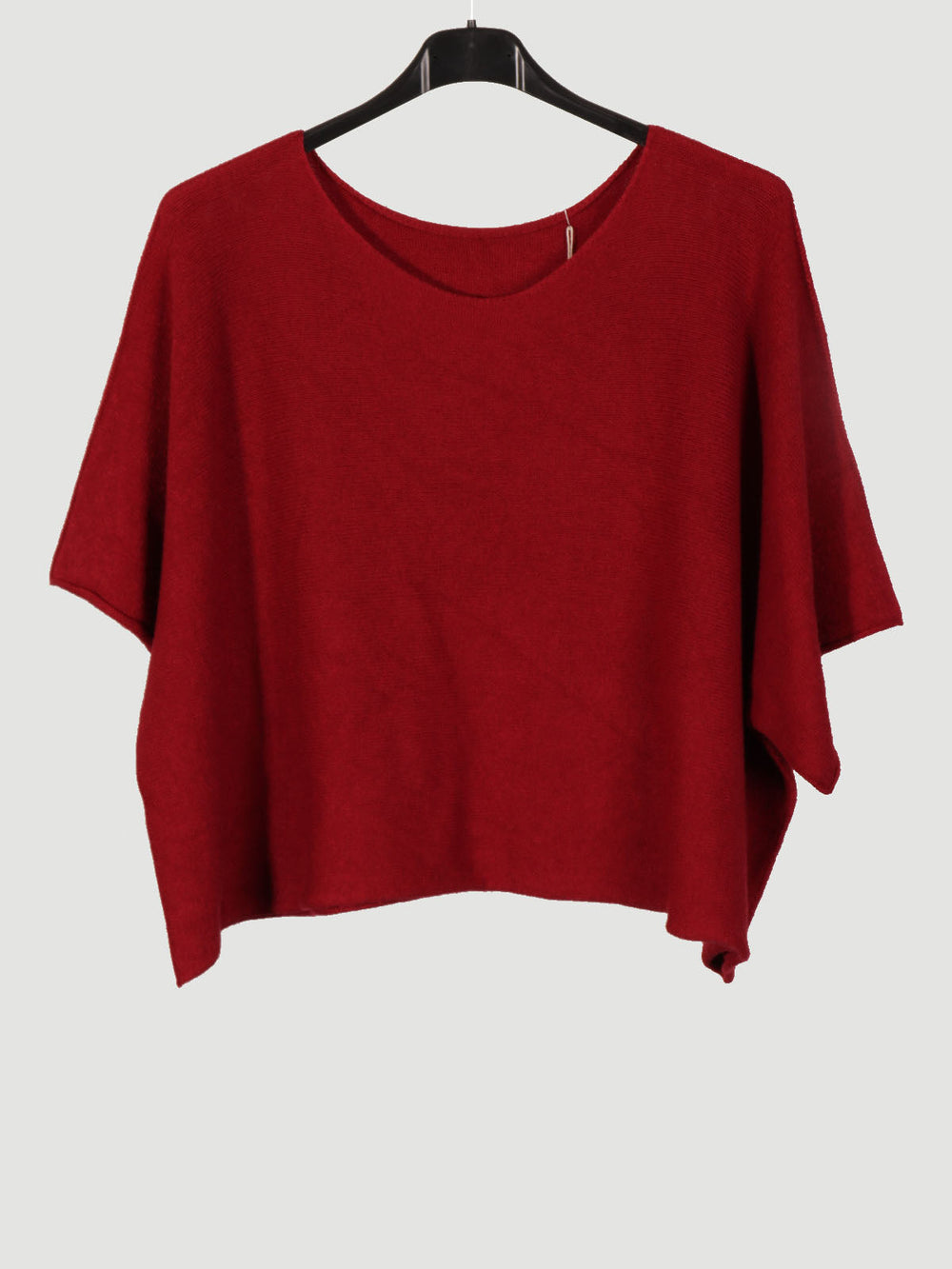 Italian Plain Knitted Batwing Crop Jumper crafted from a refined blend of viscose, polyamide, and polyester, this Italian Plain Knitted Batwing Jumper in wine offers both comfort and durability. Designed as one size to fit UK sizes 8 to 16, it features a relaxed batwing silhouette with a 22-inch length and 26-inch width from pit to pit, ensuring a flattering, adaptable fit. Ideal for layering, this jumper combines a minimalist style making it a versatile addition to your wardrobe.