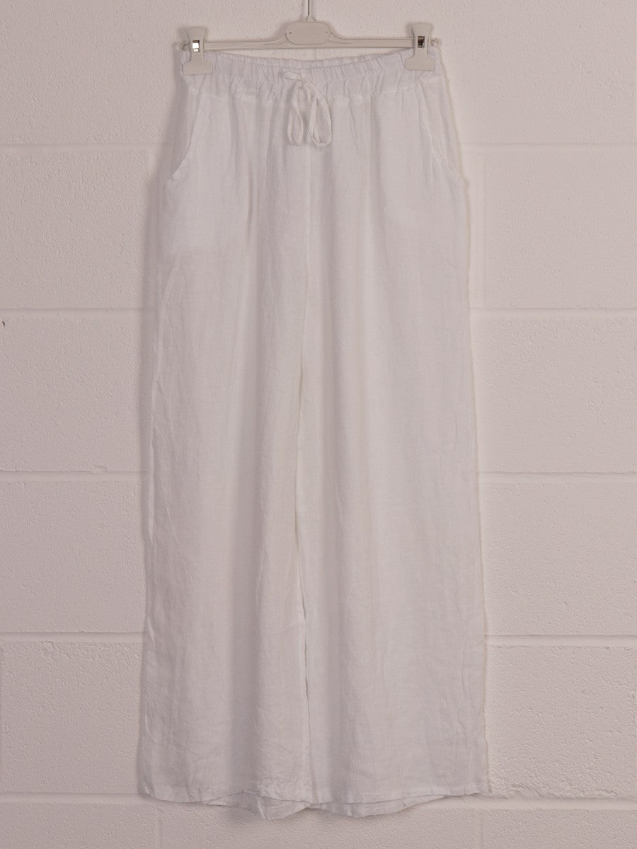 Crafted from high-quality Italian linen, these white plain cerise culottes offer breathable comfort and a refined silhouette. Designed with practical side pockets, they combine functionality with effortless style, making them an ideal choice for warm-weather wardrobes. Their tailored cut ensures a flattering fit suitable for both casual and professional settings.