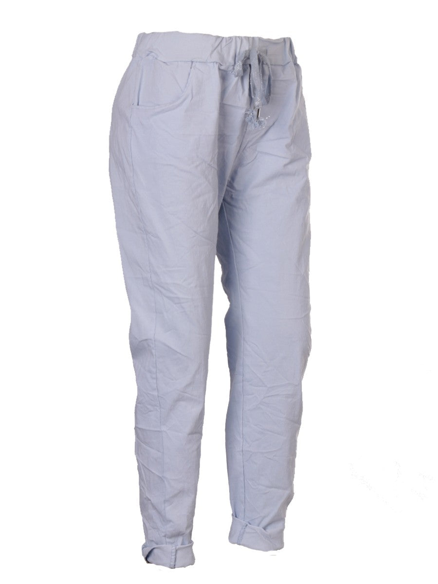 Experience the perfect blend of style and functionality with these Ice Blue Italian Plain Magic Pants. Crafted for a sleek, tailored look, they feature convenient side pockets for practicality without compromising elegance. Ideal for both professional and casual settings, these pants offer comfort and versatility, making them a smart addition to any wardrobe.