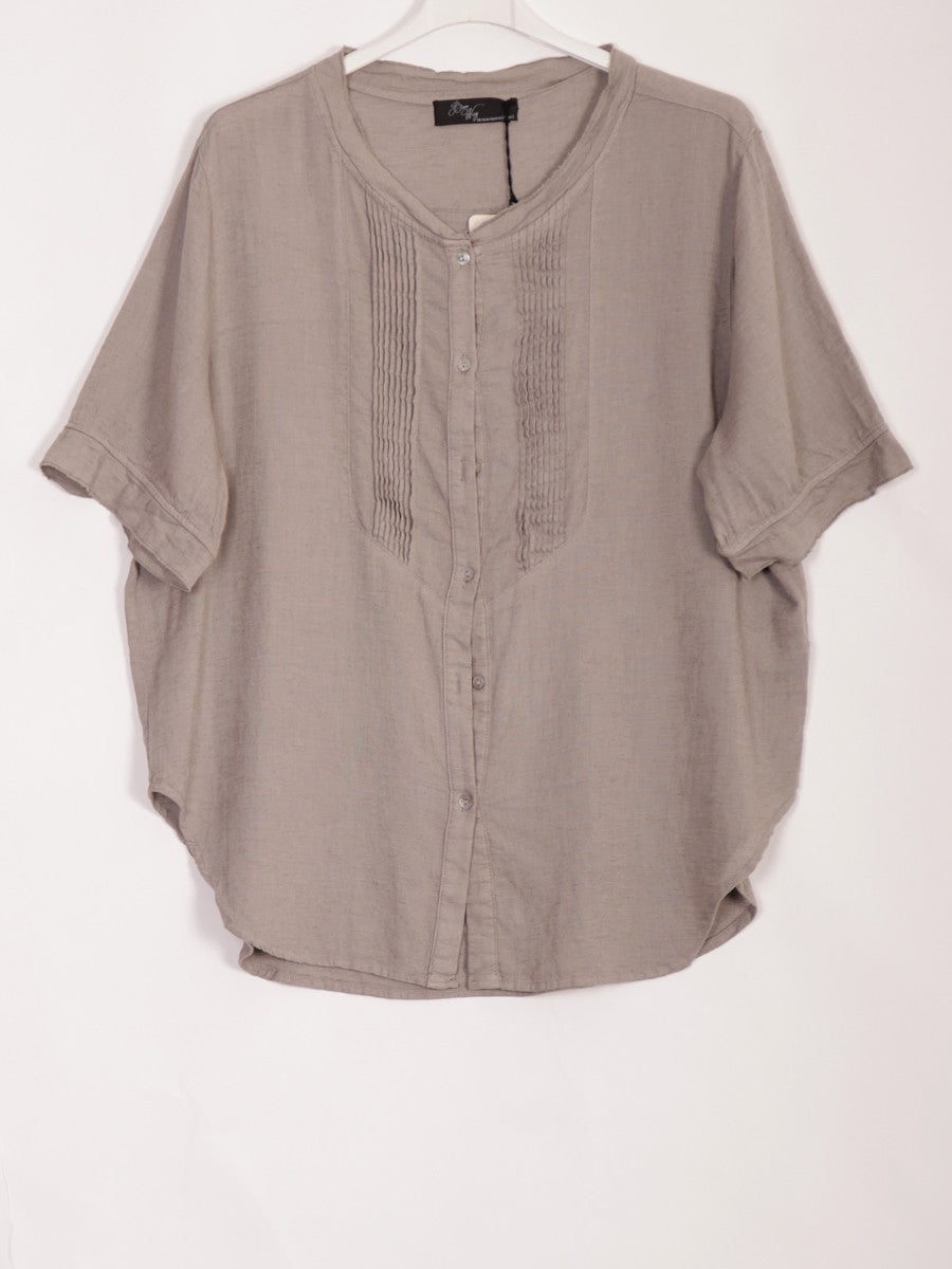 Crafted from breathable linen, this mocha Italian pleated front blouse combines timeless elegance with expert tailoring. The delicate pleats enhance its refined silhouette, while the button-through design offers versatile styling options. Ideal for warm weather, it delivers both comfort and sophistication for a polished, professional look.