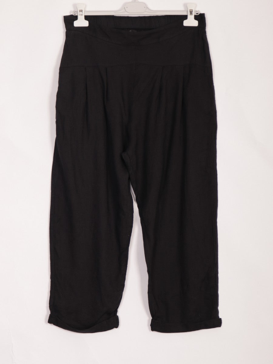 Crafted from premium linen, these black Italian pleated trousers offer a relaxed fit that ensures comfort and effortless style. The pleated design adds a refined touch, while the denim hue provides versatile wearability. Ideal for warm weather, they combine breathability with a sophisticated silhouette, perfect for both casual and smart occasions