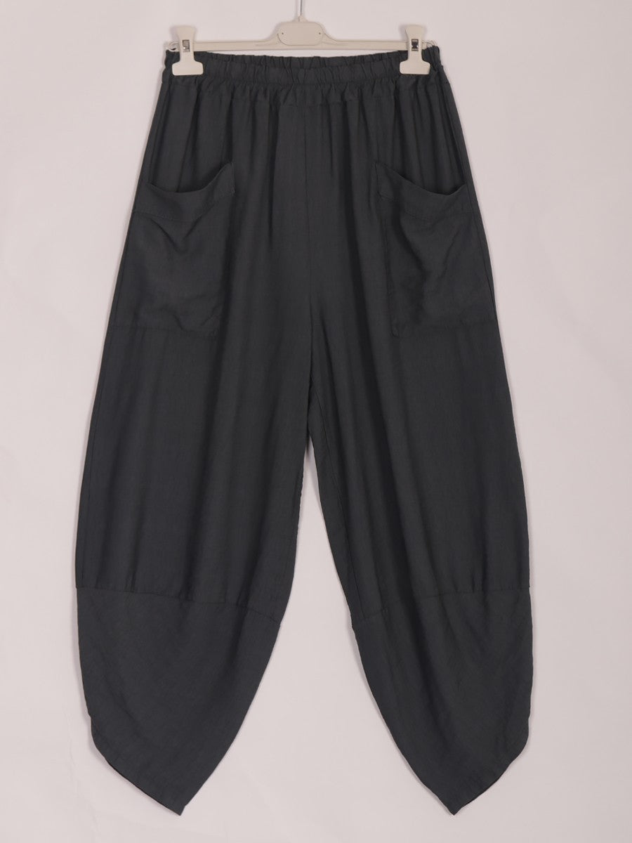 These Charcoal Italian Relaxed Fit Harem Trousers combine comfort with sophisticated style. Designed with a relaxed silhouette and practical front pockets, they offer ease of movement and convenient storage. Crafted to provide a modern yet timeless look, these trousers are ideal for those seeking both functionality and elegance in their wardrobe.