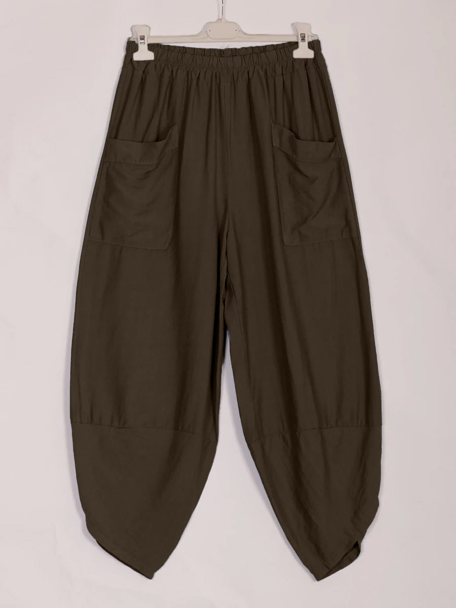 These chocolate Italian Relaxed Fit Harem Trousers combine comfort with sophisticated style. Designed with a relaxed silhouette and practical front pockets, they offer ease of movement and convenient storage. Crafted to provide a modern yet timeless look, these trousers are ideal for those seeking both functionality and elegance in their wardrobe.