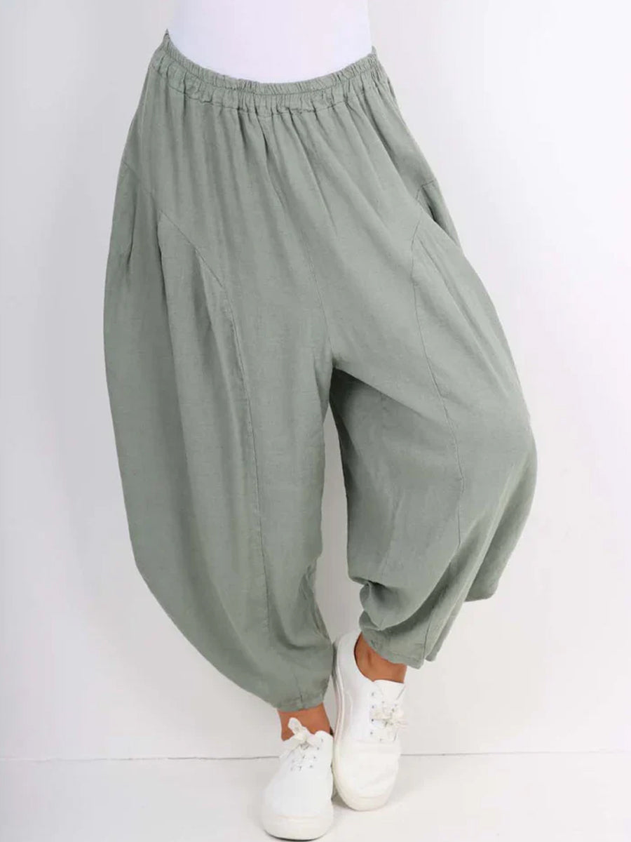 Crafted from breathable linen, these khaki Italian Relaxed Fit Harem Pants combine traditional design with modern comfort. Their loose, tapered silhouette offers unrestricted movement while maintaining a refined look. Ideal for warm climates, the natural fabric ensures moisture-wicking and durability. Perfect for those seeking effortless style without compromising on comfort.