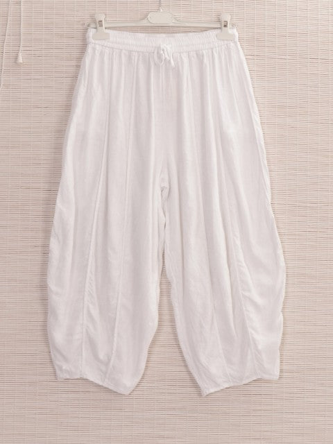 Experience effortless style and comfort with these white Italian Relaxed Fit Linen Capri Trousers. Crafted from breathable linen, they offer a lightweight feel perfect for warmer days. The relaxed fit ensures ease of movement, while the cropped length adds a modern touch. Ideal for casual outings or smart-casual occasions, these trousers combine Italian craftsmanship with timeless design for a versatile wardrobe staple.