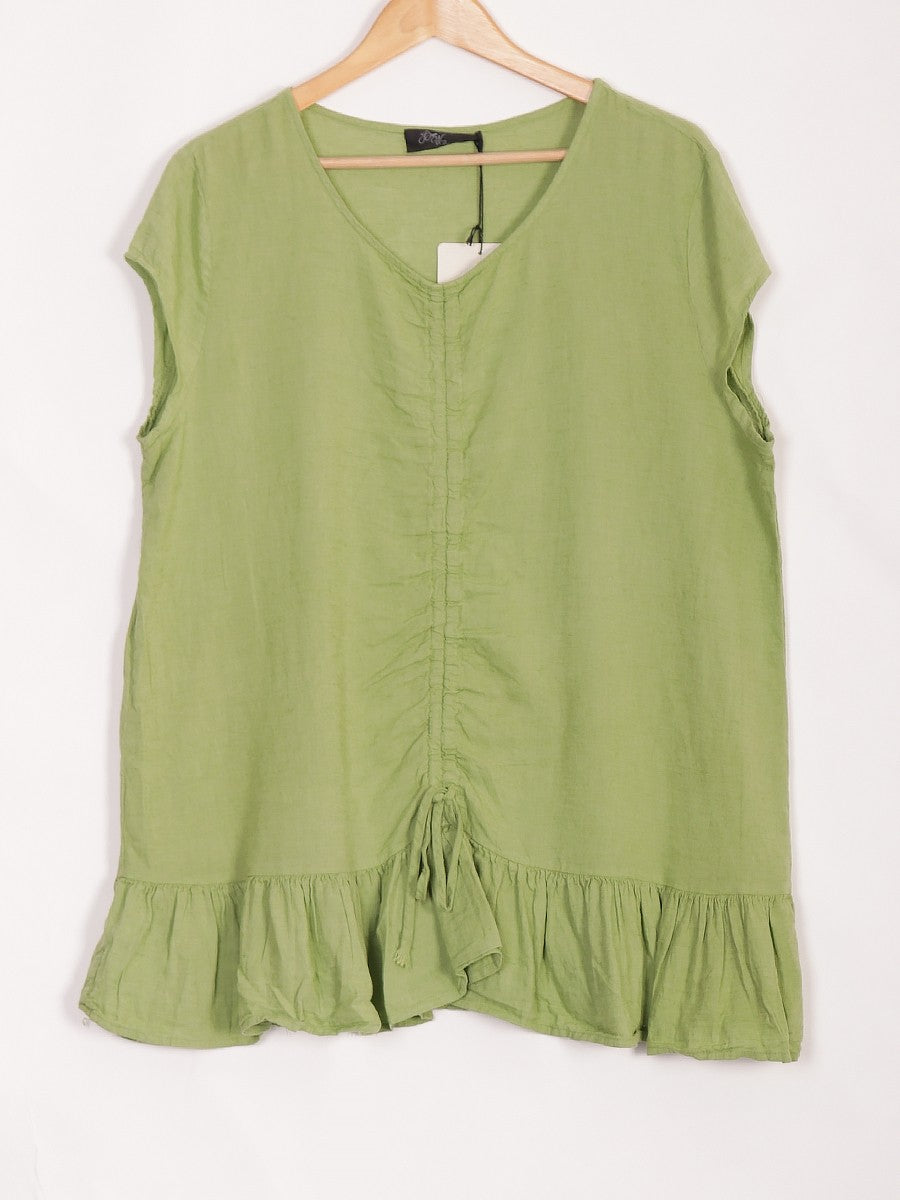 Crafted from breathable linen, this lime green Italian Ruched Front Linen Top combines timeless elegance with expert tailoring. The ruched front detail enhances the silhouette, offering a flattering fit that complements various body types. Ideal for warm weather, its lightweight fabric ensures comfort while maintaining a polished look suitable for both casual and refined occasions.