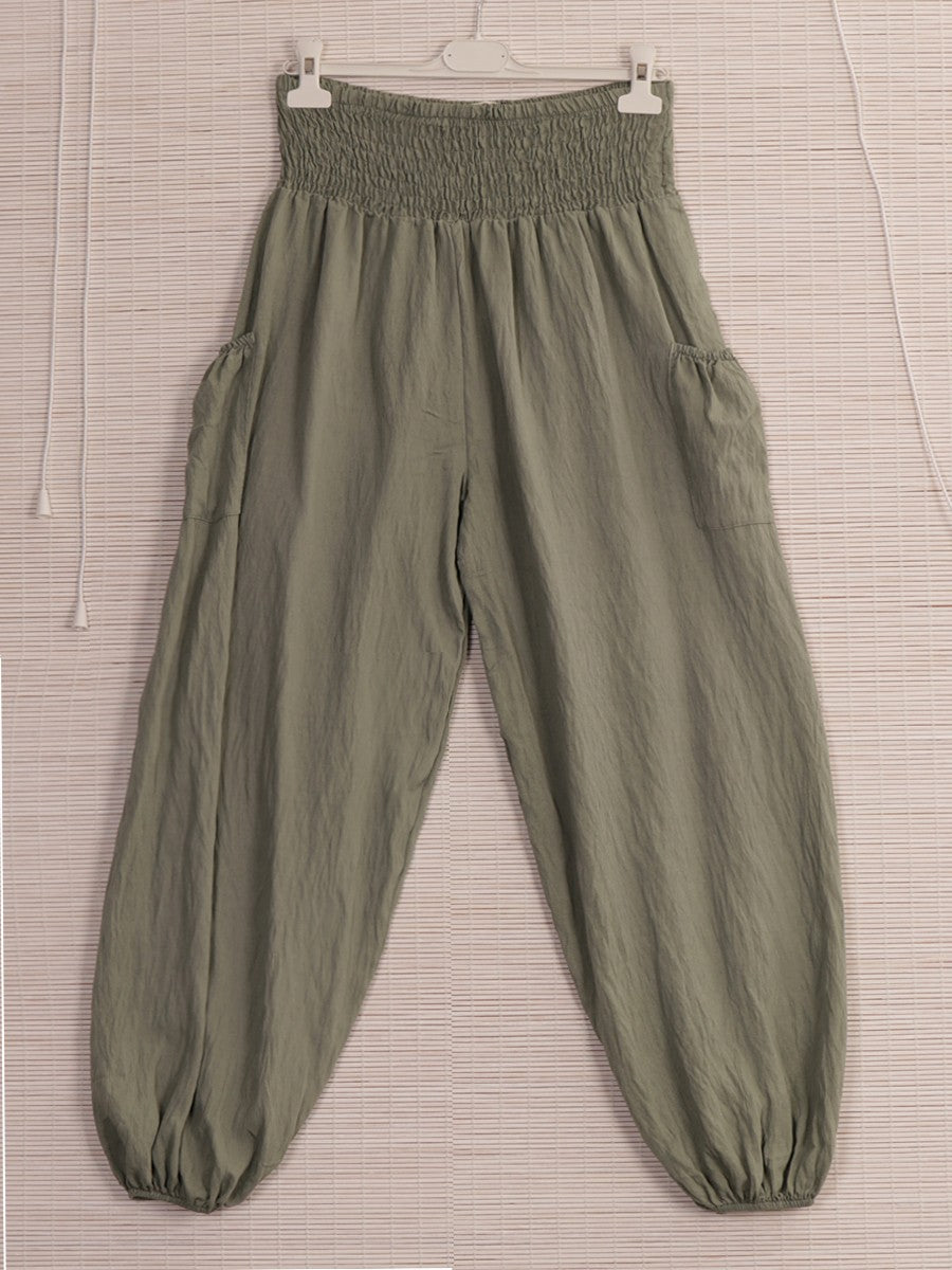 These Italian Side Pockets Detail Harem Pants in khaki combine traditional comfort with modern style. Crafted for a relaxed fit, they feature practical side pockets that add functionality without compromising the sleek silhouette. Ideal for both casual and refined looks, these pants offer versatility and ease, making them a sophisticated addition to any wardrobe.