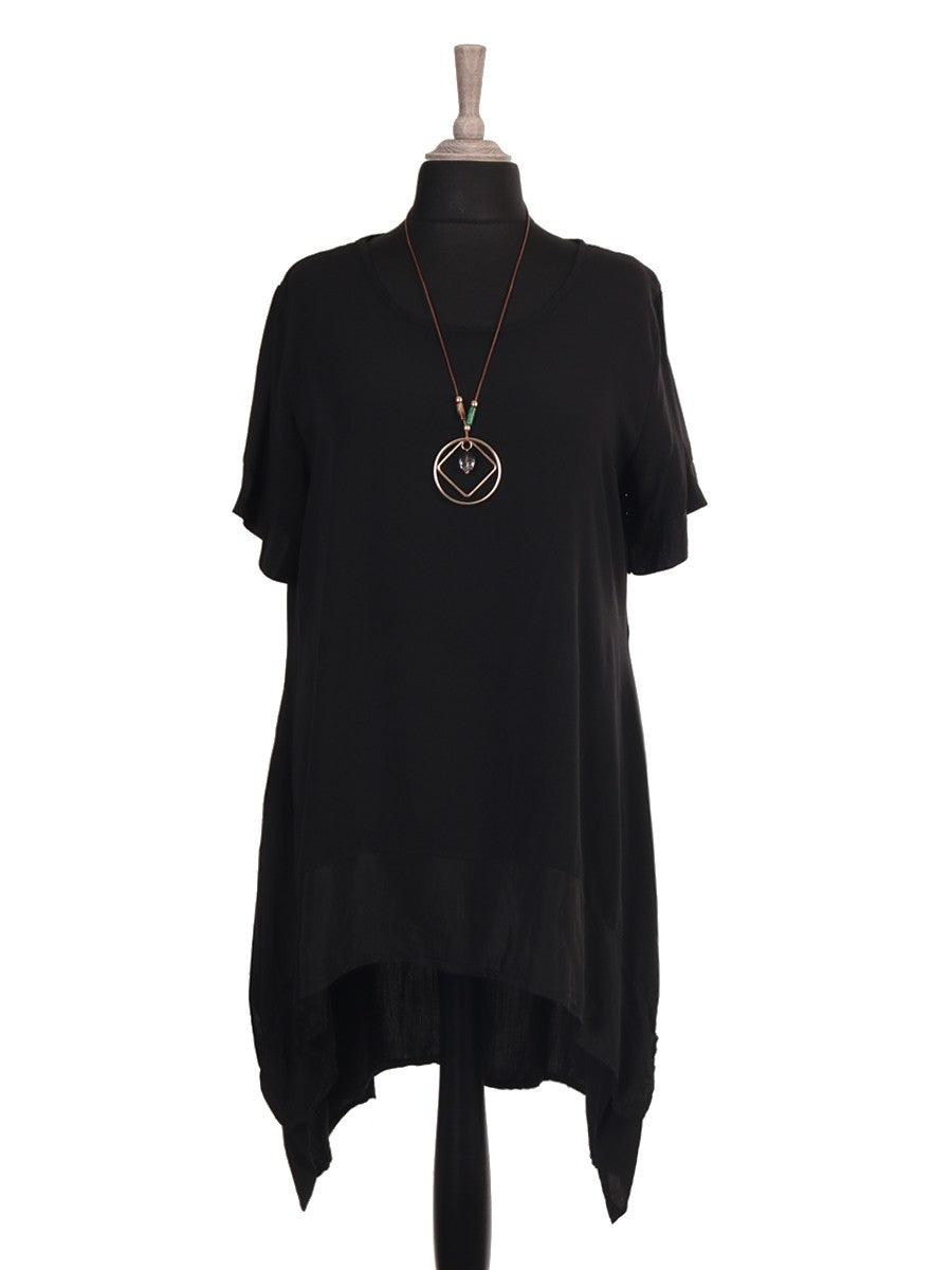 Experience elegance with the Black Italian Silk Hem Dress, crafted from luxurious silk for a smooth, flowing silhouette. Designed with practical side pockets, it combines style with convenience. The included necklace adds a refined finishing touch, making this dress perfect for sophisticated occasions or upscale events. Its expert tailoring ensures a flattering fit that highlights your natural grace.