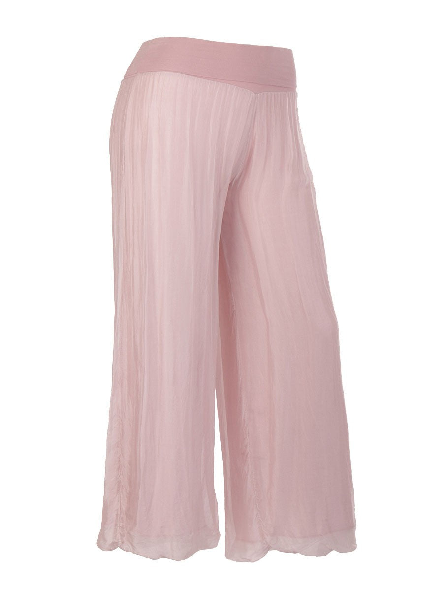 Experience the perfect blend of luxury and comfort with these Italian baby pink silk trousers. Crafted from premium silk, they offer a smooth, breathable feel ideal for all-day wear. The elasticated waist ensures a tailored fit while allowing ease of movement, making them suitable for both relaxed and refined occasions. Elevate your wardrobe with this sophisticated yet practical piece designed for discerning tastes.