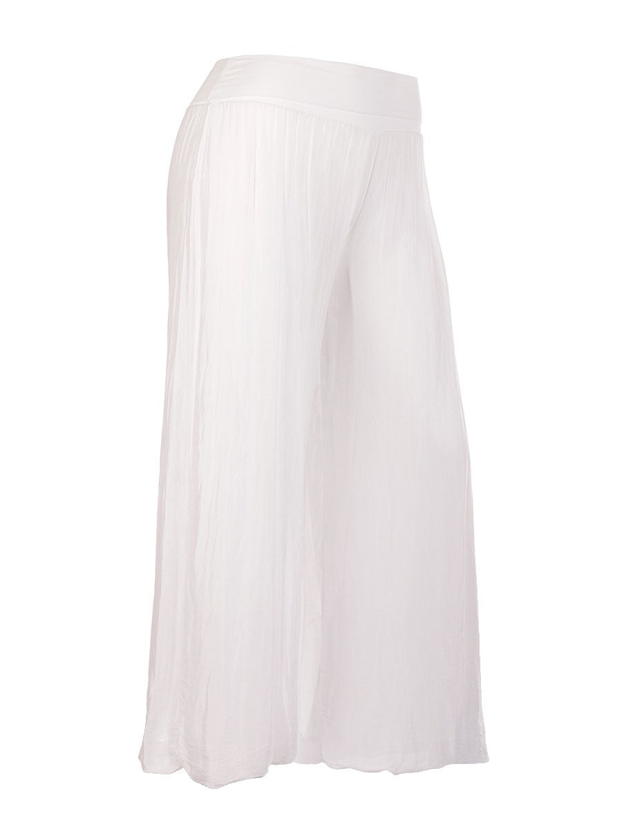 Experience the perfect blend of luxury and comfort with these Italian white silk trousers. Crafted from premium silk, they offer a smooth, breathable feel ideal for all-day wear. The elasticated waist ensures a tailored fit while allowing ease of movement, making them suitable for both relaxed and refined occasions. Elevate your wardrobe with this sophisticated yet practical piece designed for discerning tastes.