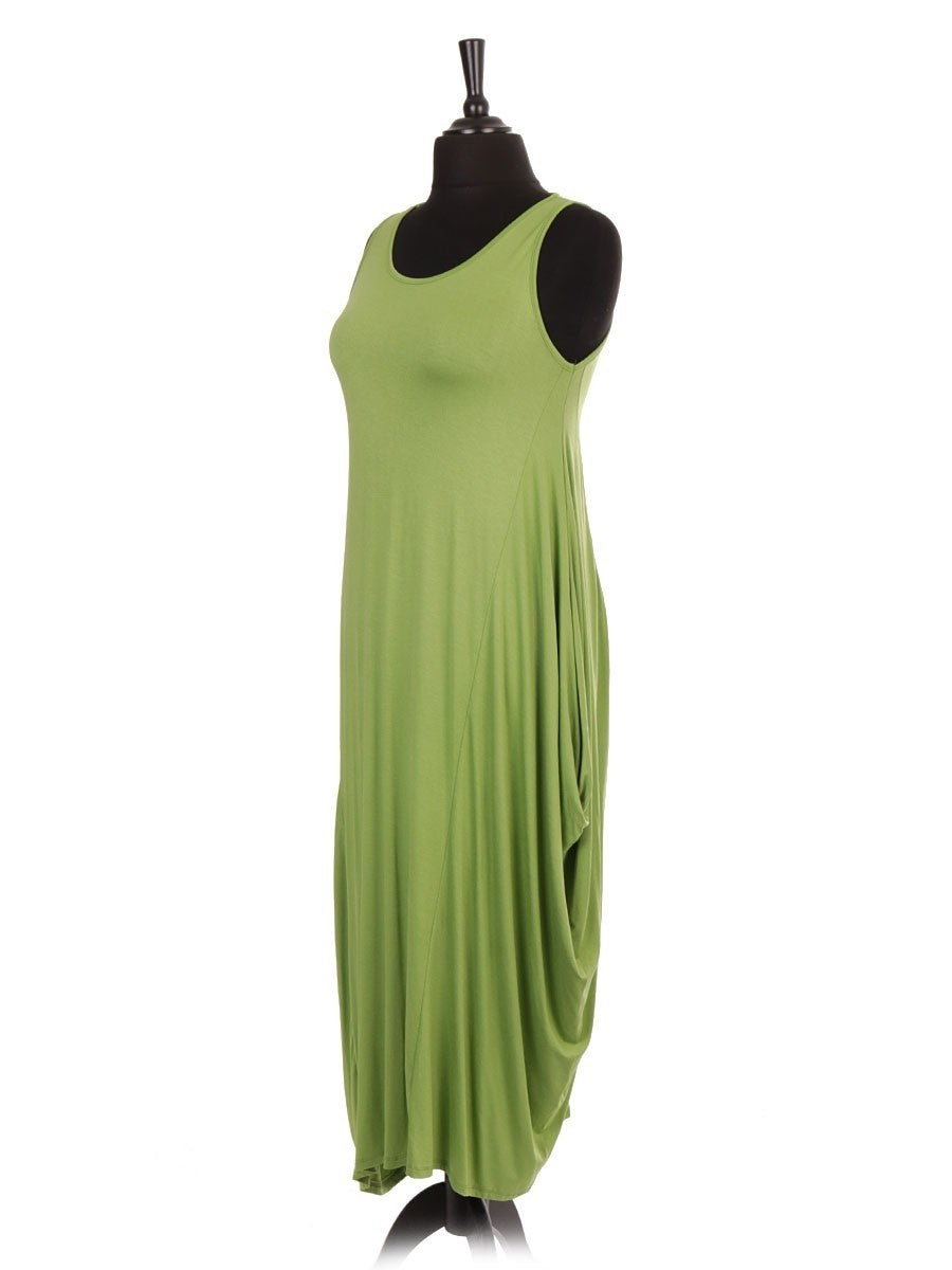 This lime Green Italian Sleeveless Jersey Parachute Lagenlook Dress combines innovative design with premium fabric for a distinctive silhouette. Crafted from soft, breathable jersey, it offers exceptional comfort and fluid movement. The parachute-inspired layering creates a dynamic, voluminous shape that enhances your presence while maintaining effortless wearability. Ideal for those seeking a sophisticated yet avant-garde addition to their wardrobe, this dress balances contemporary style with timeless Italian craftsmanship.