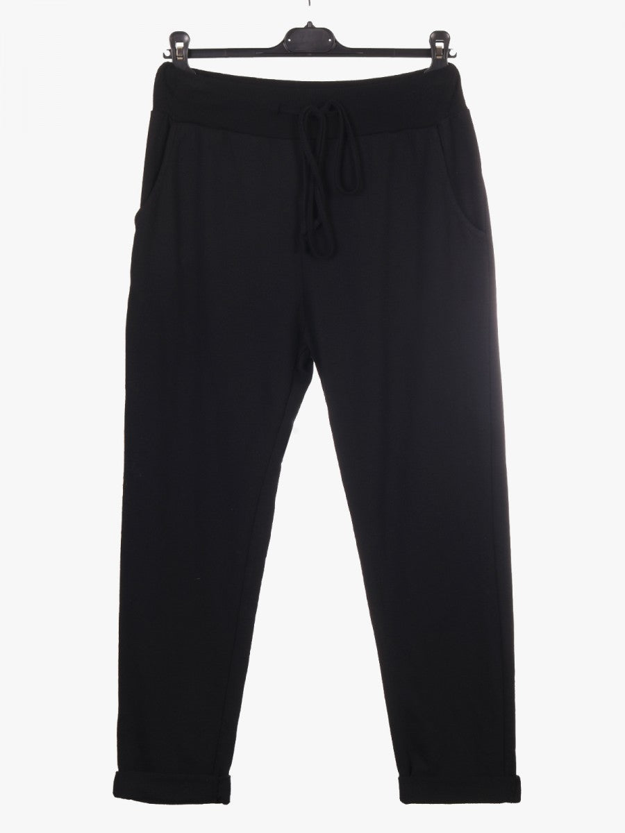 Crafted from high-quality cotton, these Black Italian solid color trousers offer both comfort and durability. Designed with practical side pockets, they provide convenient storage without compromising style. Their tailored fit and classic design make them a versatile addition to any wardrobe, suitable for both casual and formal occasions. Experience refined craftsmanship and timeless elegance with these essential trousers.