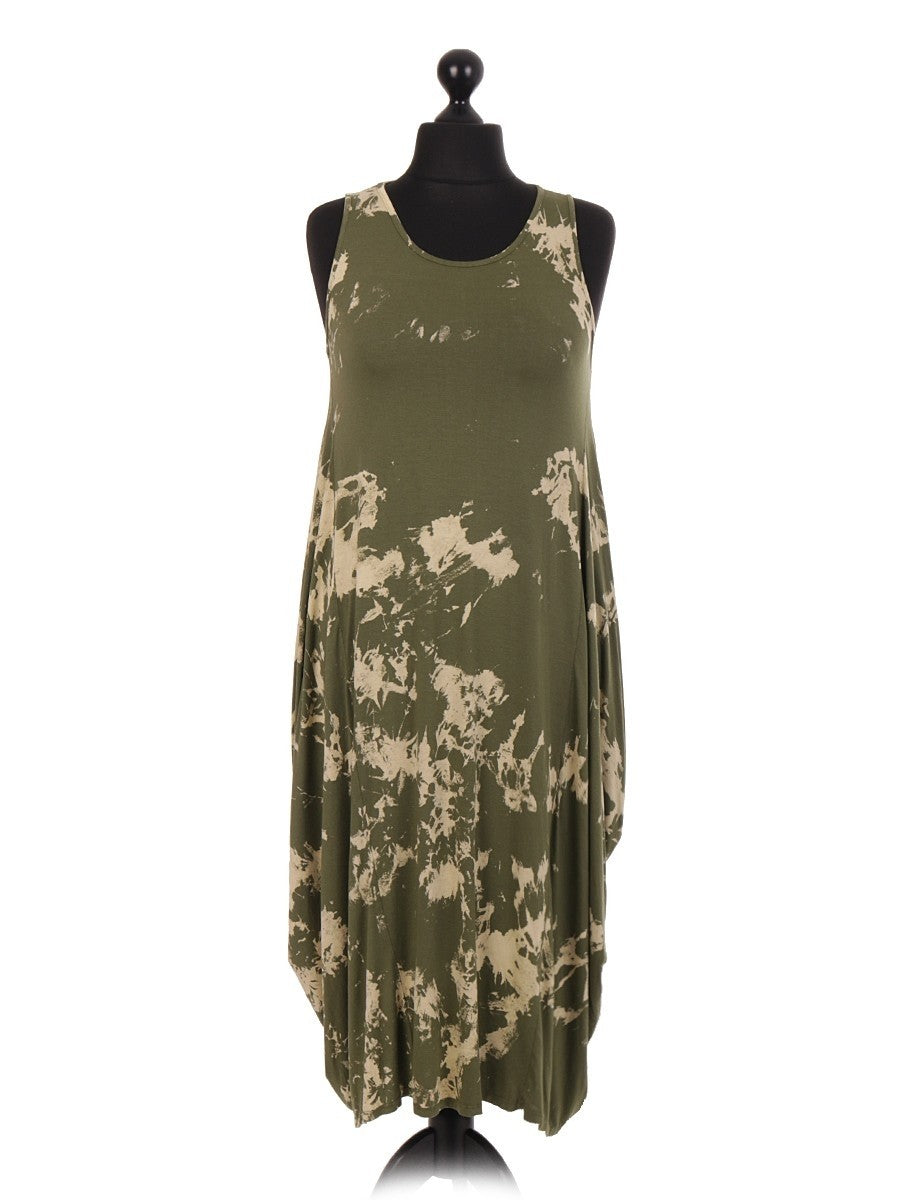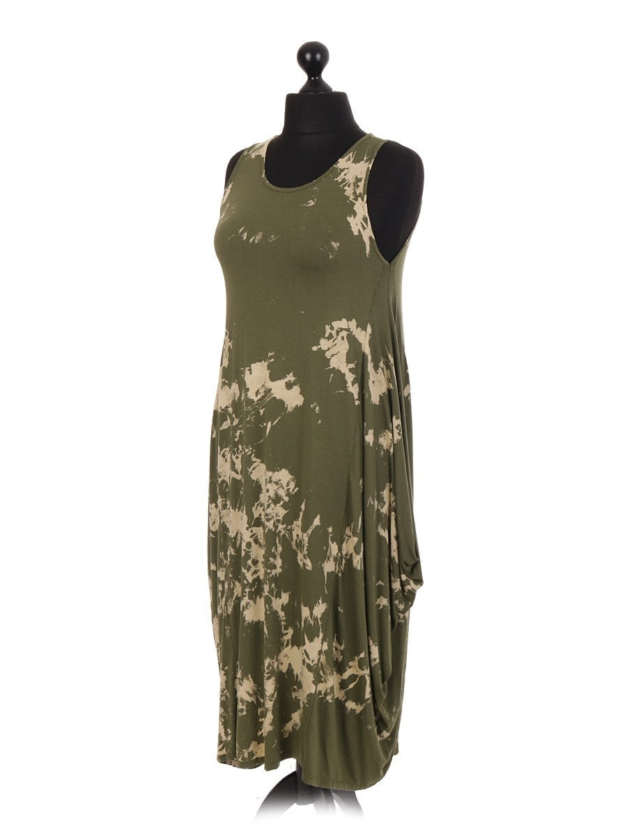 This khaki Italian Tie & Dye Print Lagenlook Dress combines artistic flair with comfortable layering. Crafted with a relaxed silhouette, it features a unique tie-dye pattern that adds depth and character to your wardrobe. Ideal for those seeking a sophisticated yet effortless look, this dress offers versatility for various occasions while ensuring ease of movement and style.