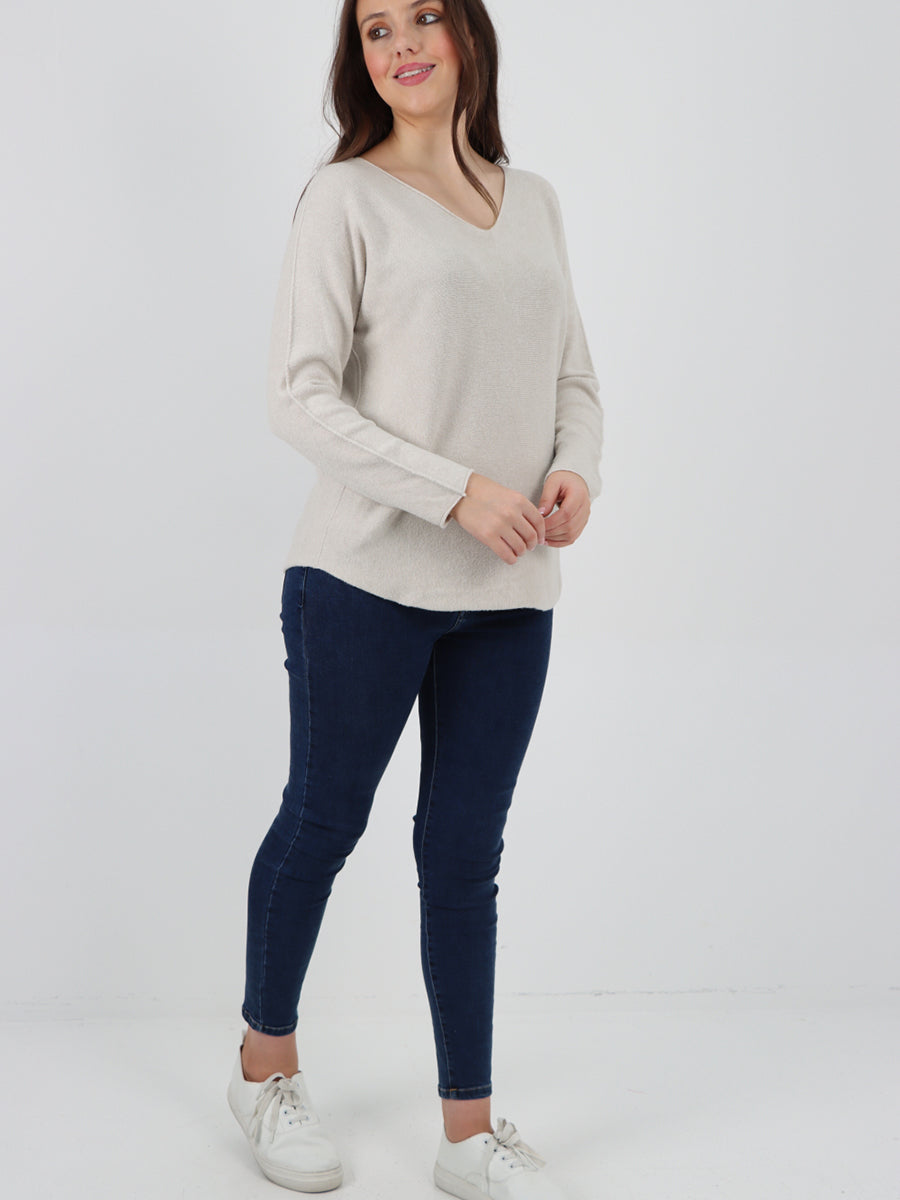 Expertly crafted in Italy, this beige V-neck soft knitted jumper is the perfect addition to any wardrobe. Made with the highest quality materials, it offers both style and comfort. Elevate your look with this versatile piece that is sure to become a staple in your wardrobe