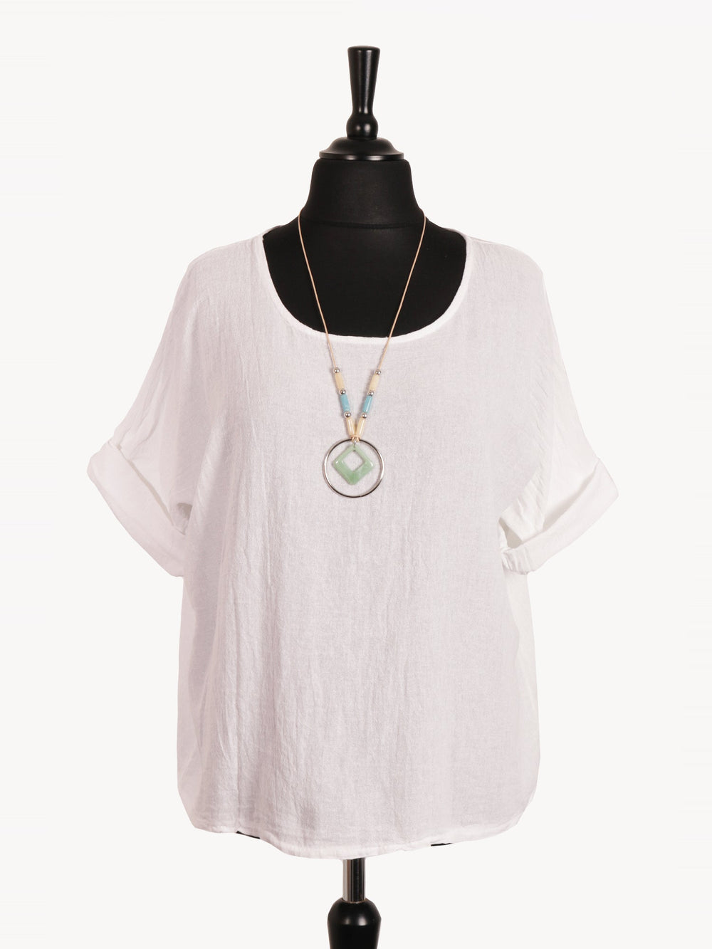 Crafted from a refined linen blend, this Italian vintage-dye top showcases the soft, White shade achieved through traditional dyeing techniques that ensure authentic colour depth and character. The relaxed silhouette offers effortless sophistication, while the accompanying necklace adds a curated finishing touch. Perfect for those who appreciate understated luxury and timeless design, this piece transitions seamlessly from casual to refined occasions. The breathable fabric makes it ideal for layering or wearing alone, delivering both comfort and style with the distinctive charm of vintage-inspired craftsmanship.