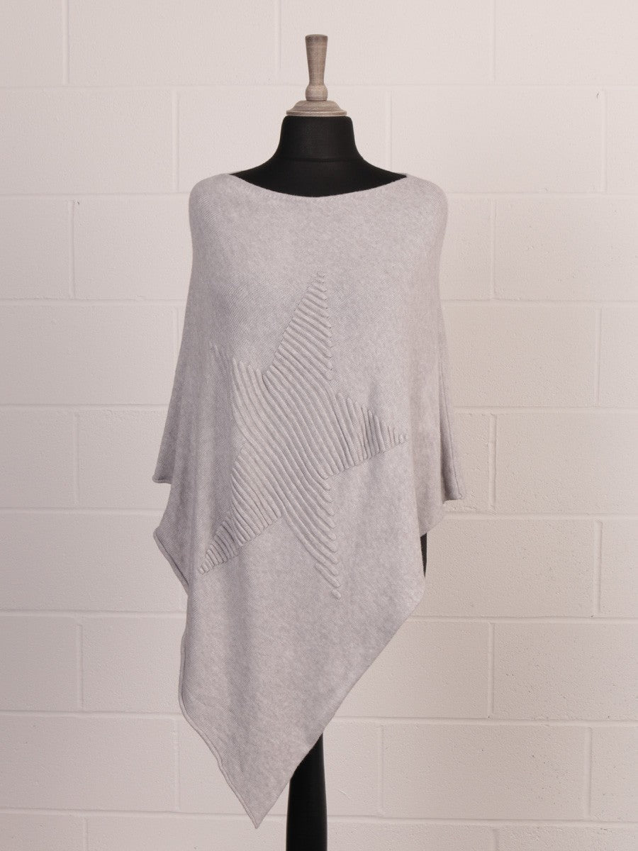 Crafted from a premium Italian wool blend, this light grey ribbed star poncho offers exceptional warmth and refined texture. Its structured ribbing enhances durability while providing a flattering silhouette. Ideal for layering, it combines timeless style with expert craftsmanship, making it a versatile addition to any sophisticated wardrobe.