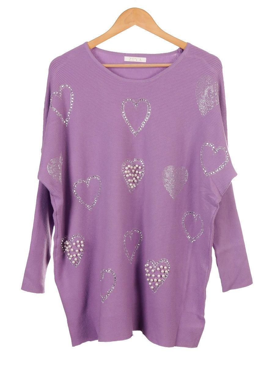Elevate your knitwear collection with this lilac ribbed jumper featuring delicate pearl and diamante heart details. Crafted for both comfort and style, its textured fabric offers a flattering fit while the subtle embellishments add a refined, feminine touch. Perfect for layering or wearing on its own, this jumper combines classic design with expert detailing to enhance your everyday wardrobe.